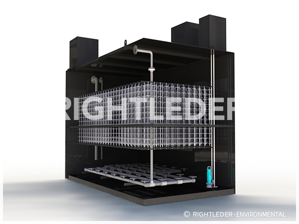 MBR一體化污水處理主要指通過生物技術(shù)與膜分離技術(shù)的有機(jī)結(jié)合進(jìn)行污水處理的技術(shù)。其中膜分離設(shè)備能夠使生化反應(yīng)池中的大分子有機(jī)物質(zhì)及活性污泥截留住,并省掉二沉池,從而使活性污泥濃度得以提高,污泥停留時(shí)間以及水力停留時(shí)間都能得到控制。